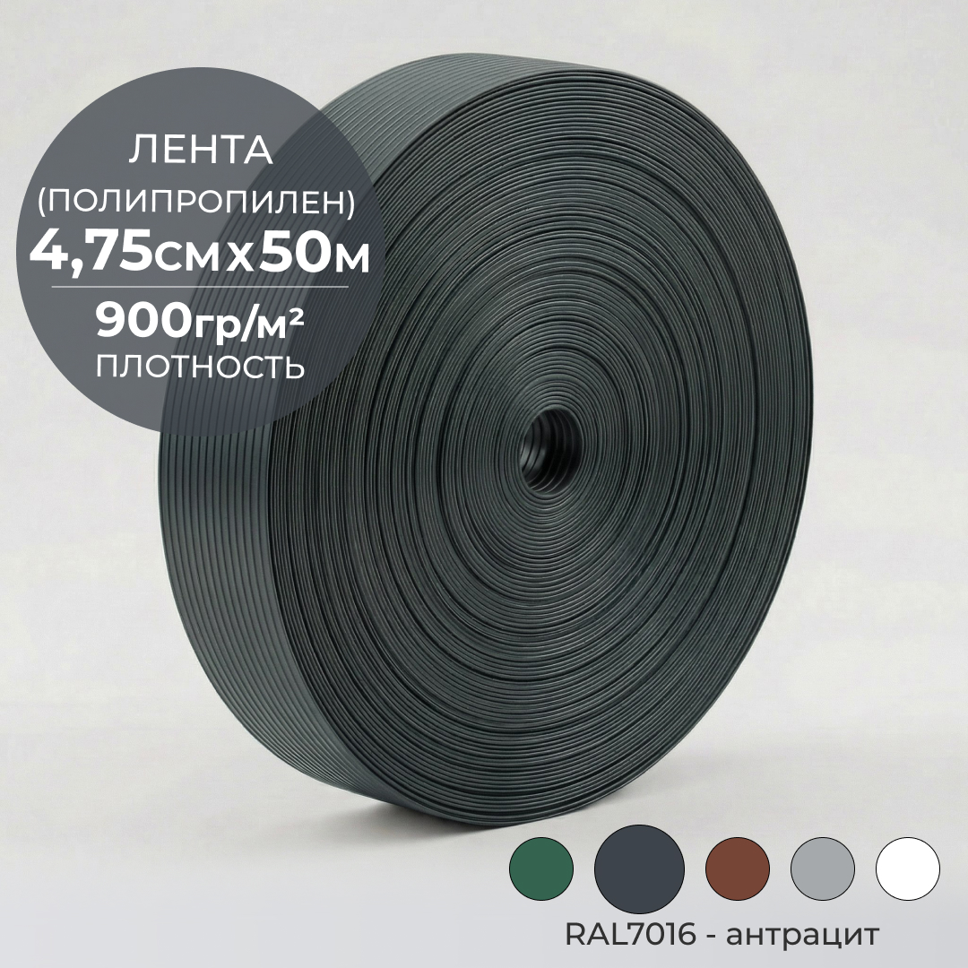 Лента для забора 4,75см*50м полипропиленовая, антрацит RAL7016