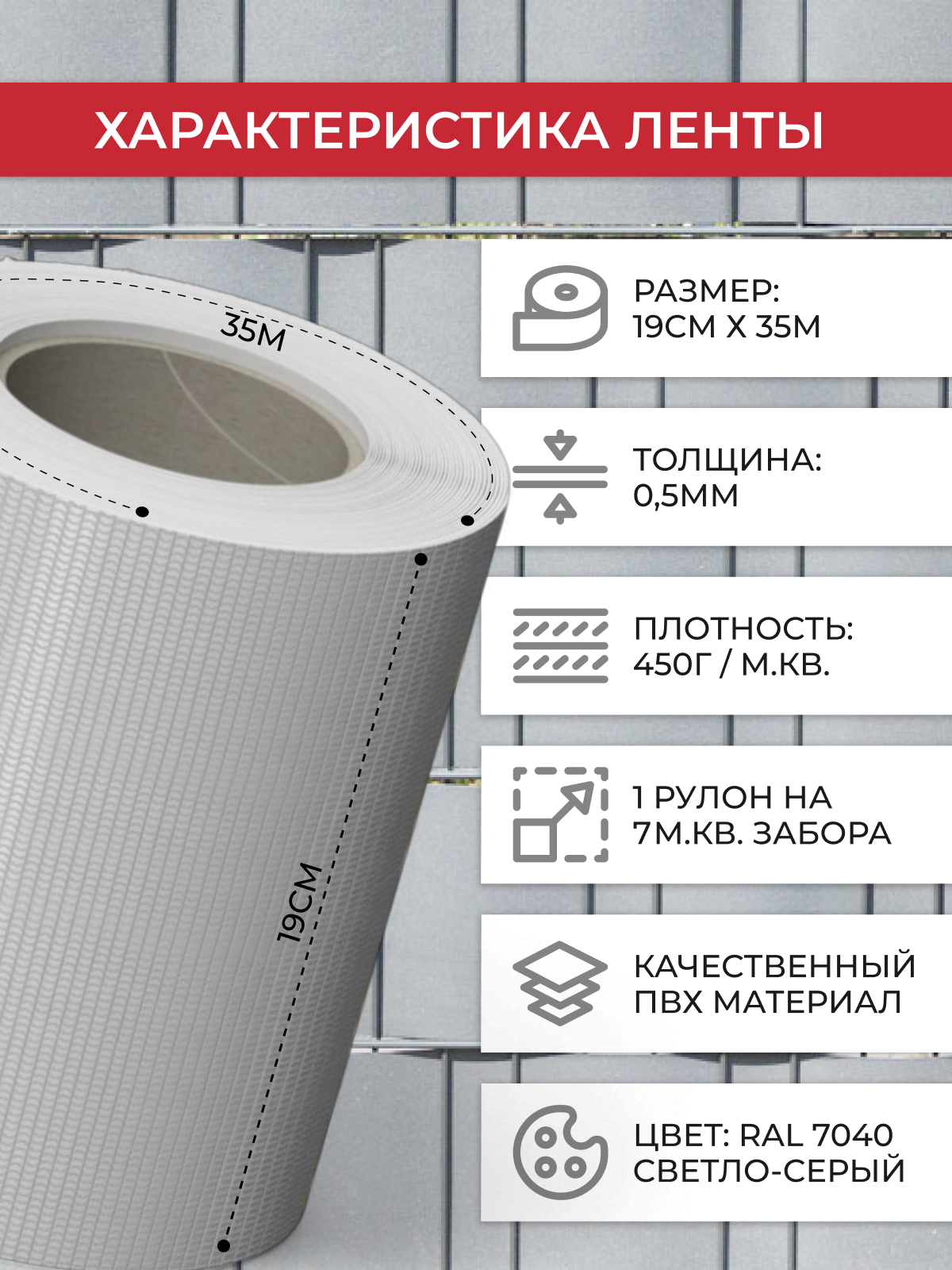 Лента для 3Д забора, рулон 19см*35м, светло-серая RAL7040.
