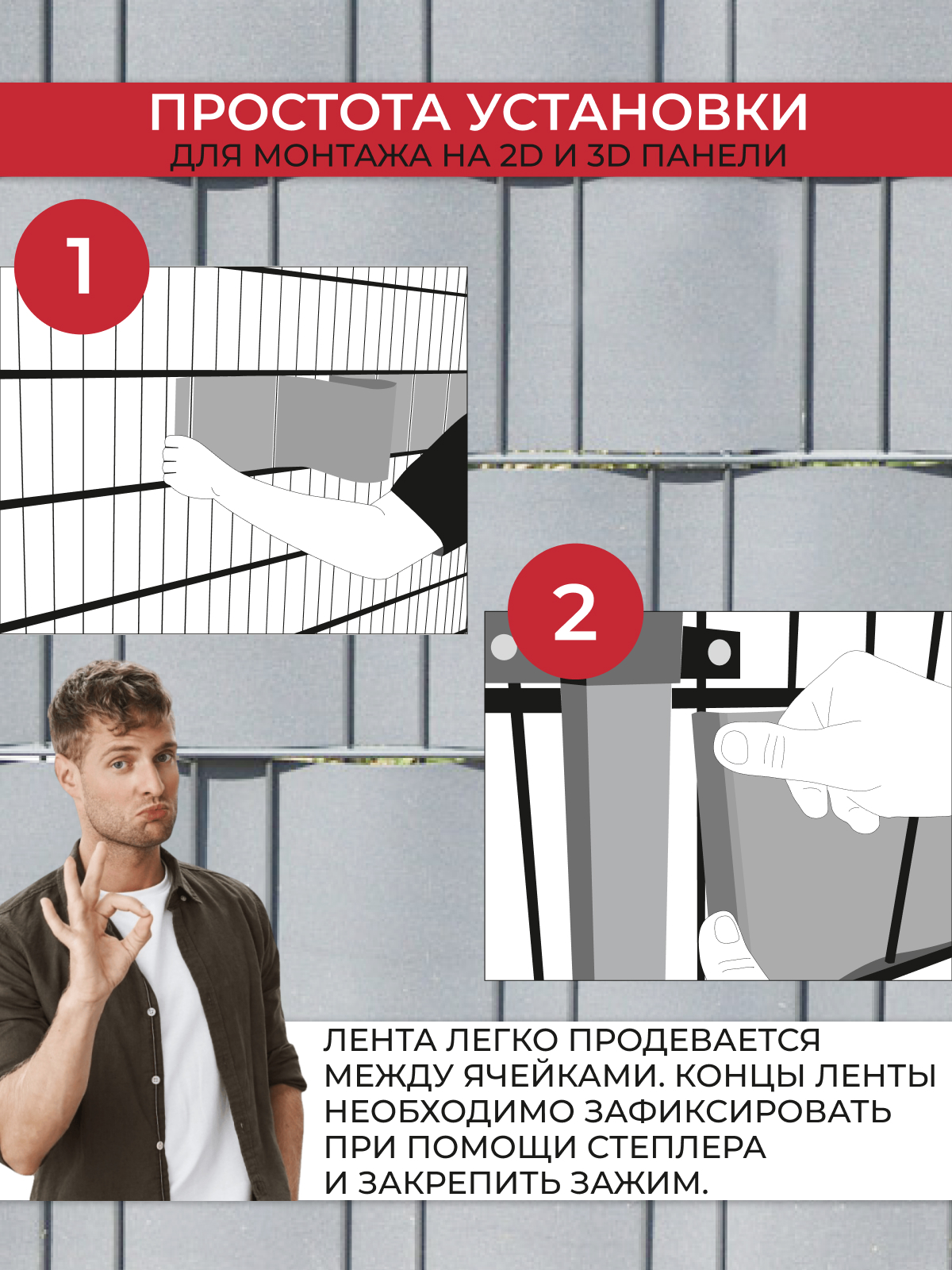 Лента для 3d забора используется в тех случаях, когда встает вопрос чем закрыть забор из сетки, чтобы он не просматривался.